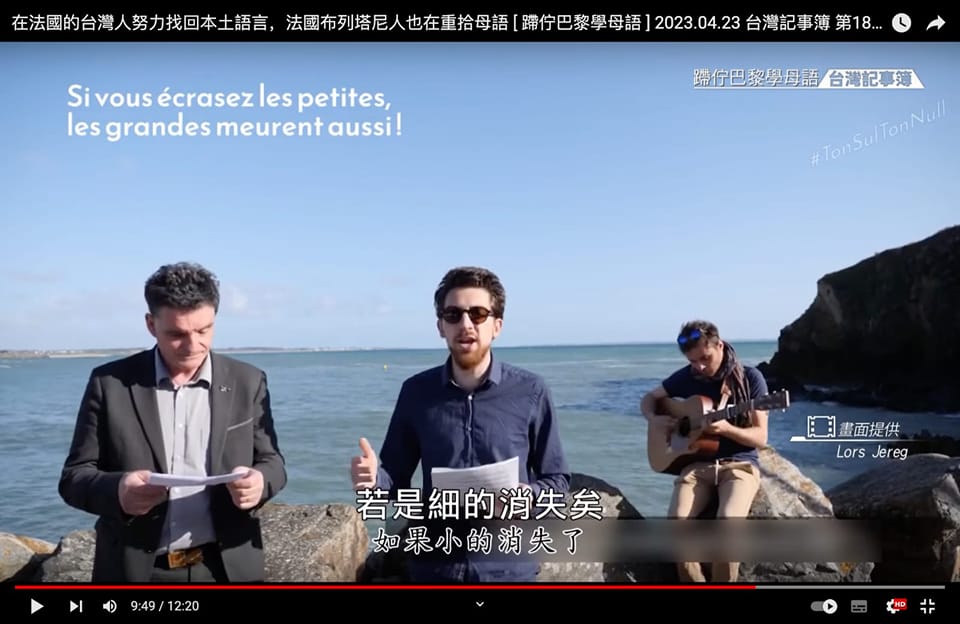 , encore moins ! Un reportage qui fait le parallèle entre 2 langues « minorisées », la taiwanais et le breton ! Le mépris de nos langues n’a pas de frontière