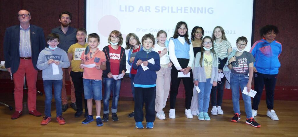 Samedi, l’association Div Yezh Bruz a organisé, comme depuis 2017, la cérémonie du Spilhennig, visant à féliciter les enfants de CM2 qui ont achevé leur scolarité bilingue en breton et en français.